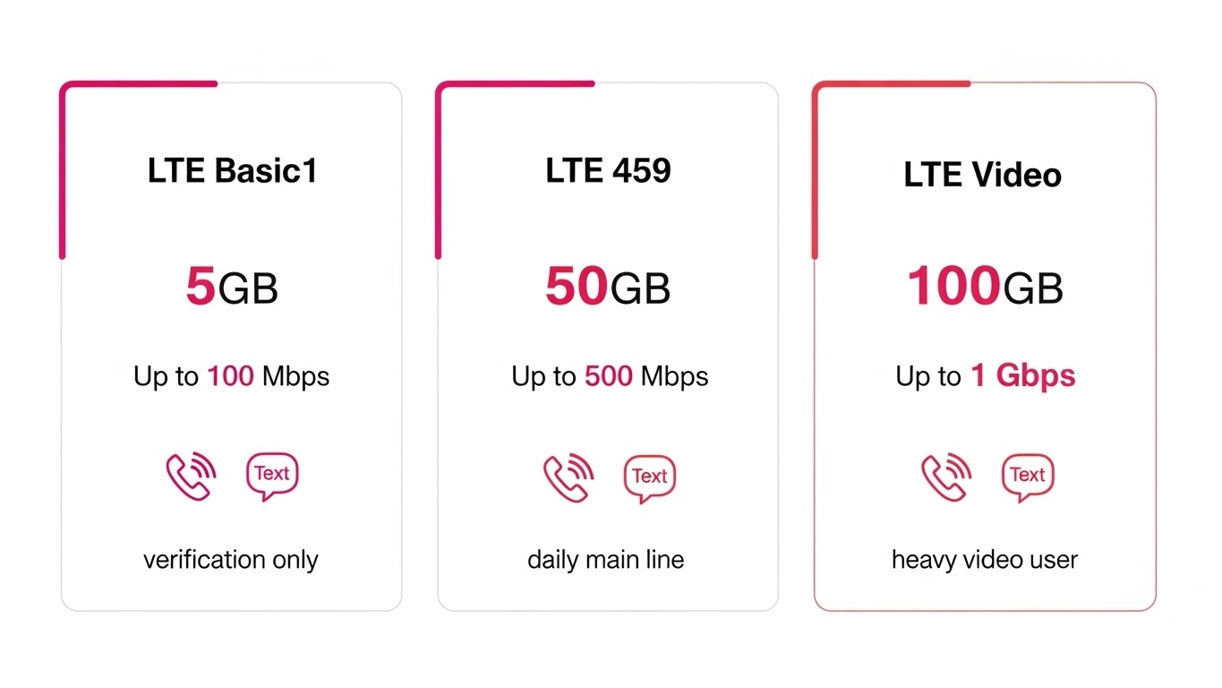 | LTE 기본1 | 12,100원 | 300MB | 통화 50분 + 문자 30건 | 인증·알림 위주 세컨 회선 |