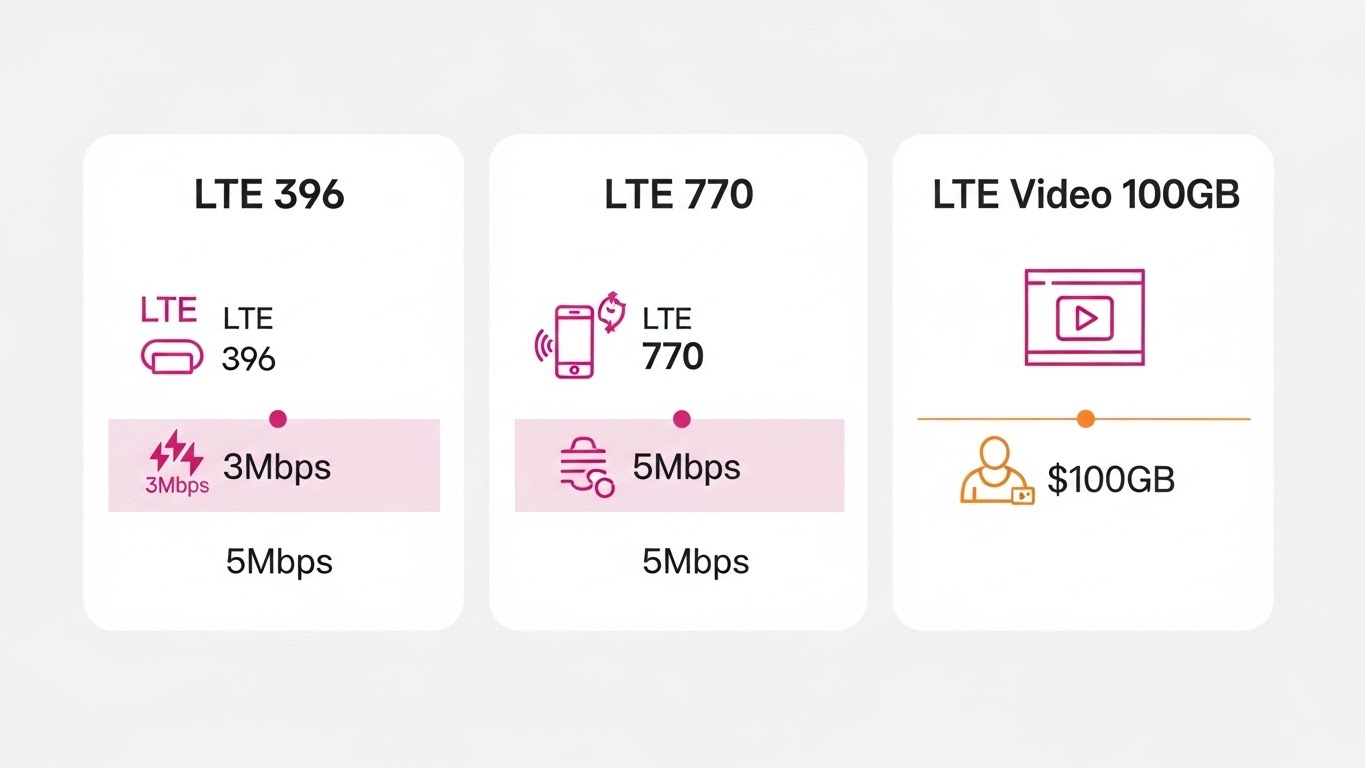 - LTE 396 : 39,600원 / 10.3GB + 3Mbps- LTE 770 : 77,000원 / 11GB + 매일 2GB + 3Mbps