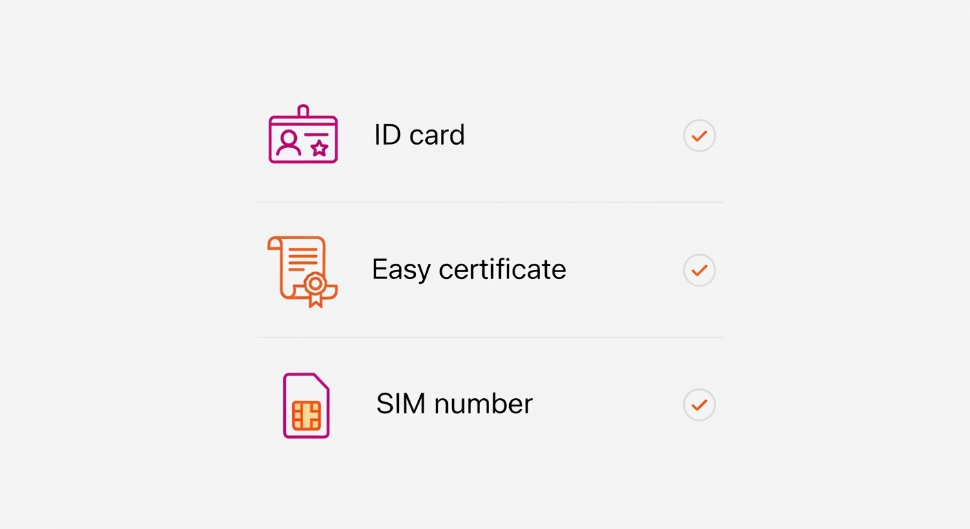 - 간편인증서(PASS/삼성페이/카카오페이 중 1개)