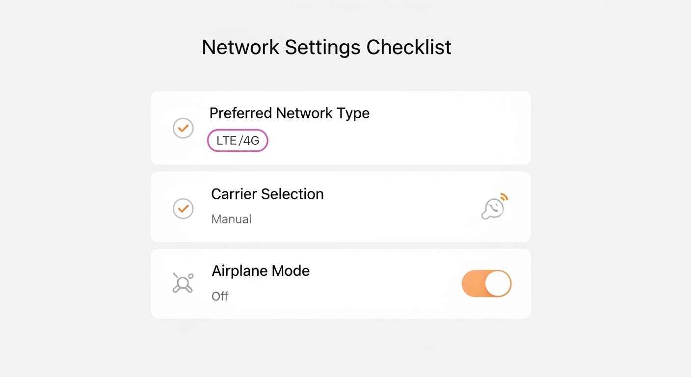 공기계 신호 약함은 대부분 LTE/자동 + 망 수동 선택 + APN/VoLTE에서 해결됩니다.